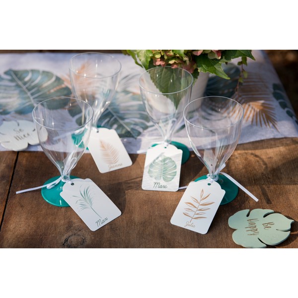 Palmové listy na těchto jmenovkách budou ideální pro tropický nebo letní párty afrikano dekor při vaší venkovní párty.