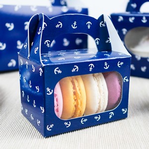 Uschovejte sladké barevné pokušení, kterým makronky bezesporu jsou, do malých designových krabiček s námořnickým motivem. Tyto krabičky jsou pro makronky jako stvořené. Makronky jsou vhodné jako dárek a poslouží i jako výslužka pro svatební hosty. Rádi byste potěšili sladkým překvapením? Makronky ve stylové krabičce jsou dobrou volbou.