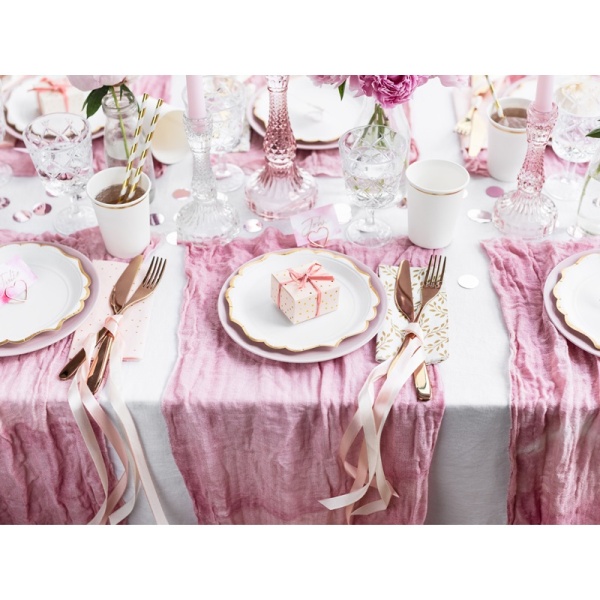 Roztomilé a dekorativní malé krabičky ve světle růžové barvě se zlatými puntíky