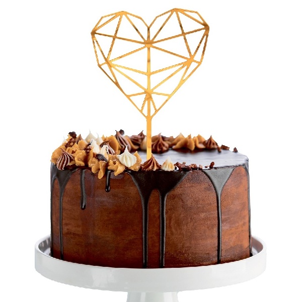 S touto dekorací na dort v podobě diamantového srdce ve zlaté barvě se každý dort stane jedinečným zážitkem.