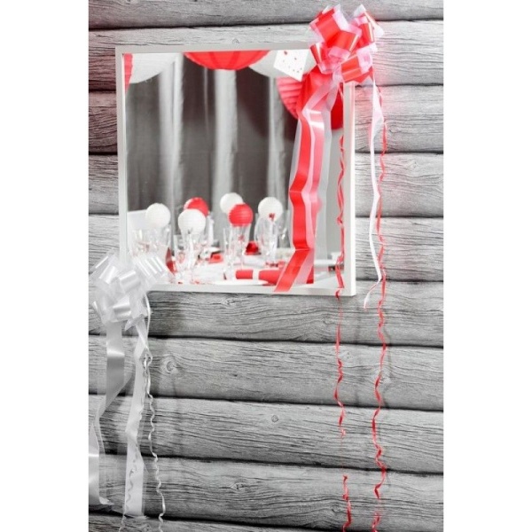 Stahovací dlouhá červená mašle, doplněná bílým tylem