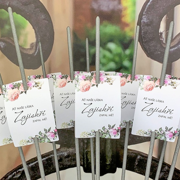 svatebčané věděli, na kdy je to naplánováno, poslouží právě tato tzv. kartička k navlečení na svatební prskavky s