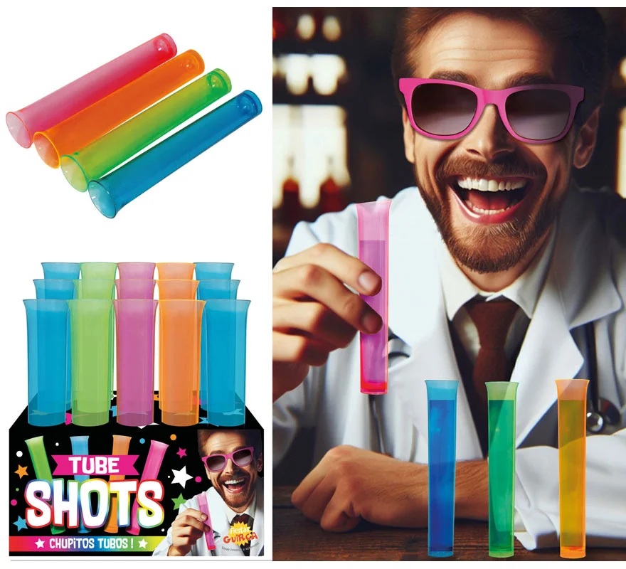 Balení 15 různých barevných zkumavek o výšce 13 cm rozproudí zábavu na každé párty nebo rozlučce se svobodou.