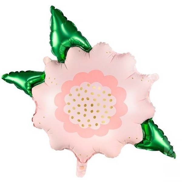 Balónek fóliový růžová kytka s listy má rozměr 60 x 50 cm.