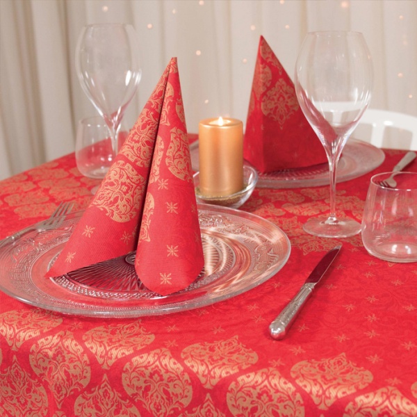 Dekorativní šerpy v rolích využíváme pro zakládání slavnostních tabulí jako středový pás. Většinou barevně laděný se založenými ubrousky i s ostatní přízdobou. V naší stálé nabídce nabízíme středové náviny v rolích z materiálu Dunicel, které svým vzhledem a vlastnostmi připomínají plátno. Jako podkladový ubrus doporučujeme banketový ubrus Dunicel v rolích, který je ze stejného materiálu v kombinaci s vysoce kvalitními ubrousky z patentovaného materiálu Dunilin. Všechny produkty jsou využívány v síti luxusních hotelů i restauracích a jsou efektní vobou pro slavnostní příležitosti jako je svatba či jiné formy stolování, které kladou důraz na detail i kvalitu.