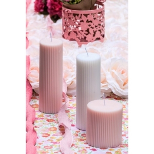 | Svíčka pastelově růžová žebrovaná ve tvaru válce Tato pěkná bílá válcová svíčka se bude hodit k výzdobě stolu na … |
