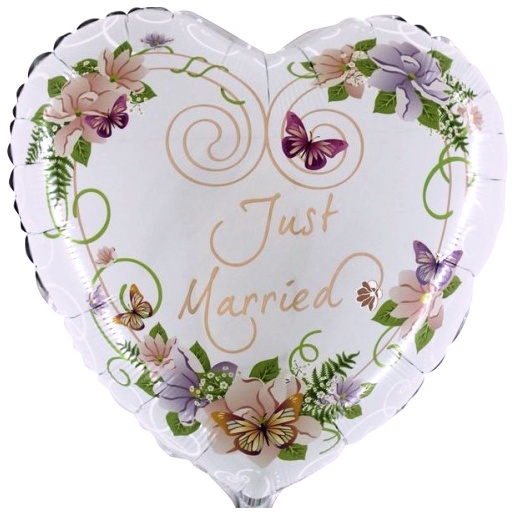 Krásný fóliový balónek Srdce s květy Just Married je ta nejhezčí dekorace na svatební oslavu.