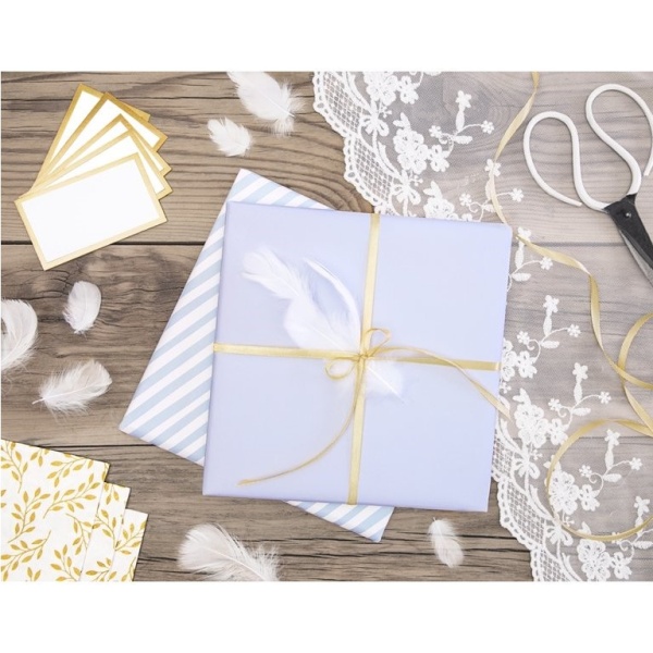 Přírodní peří bude také krásně prezentováno jako dekorace dárků nebo sladkých dárků, které chcete věnovat svým hostům jako poděkování za účast na obřadu či párty.