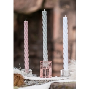 Krásně ladí i s dalšími skleněnými doplňky i sklem při aranžování slavnostní tabule. Vhodný na úzkou svíčku.