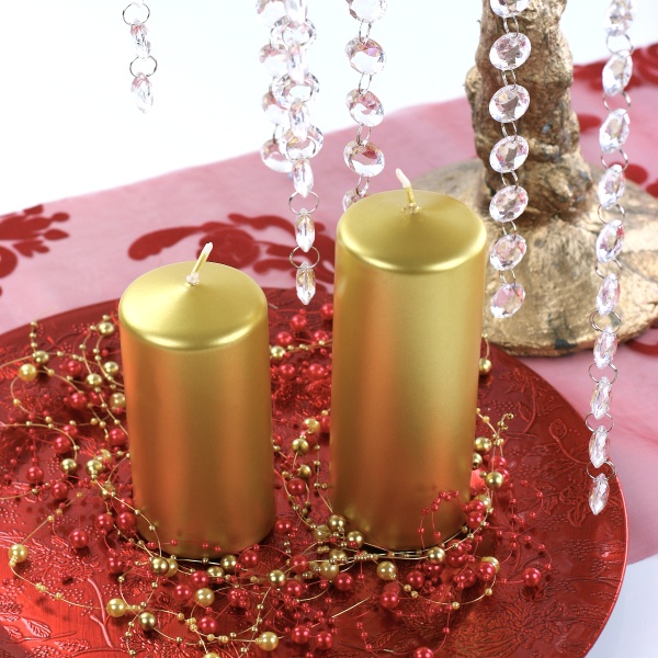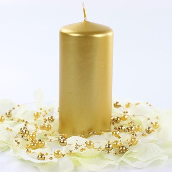 Zlatá svíčka ve tvaru válce, které vydrží svítit až 20 hodin. Hodí se na elegantní akce, kdy se v rámci stolování objevuje akcent zlaté barvy.